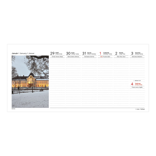 Asztali naptár Top Timer Magyarországon járva, fehér tömbös, álló, karton hátlappal, 325x155mm, 2026.év