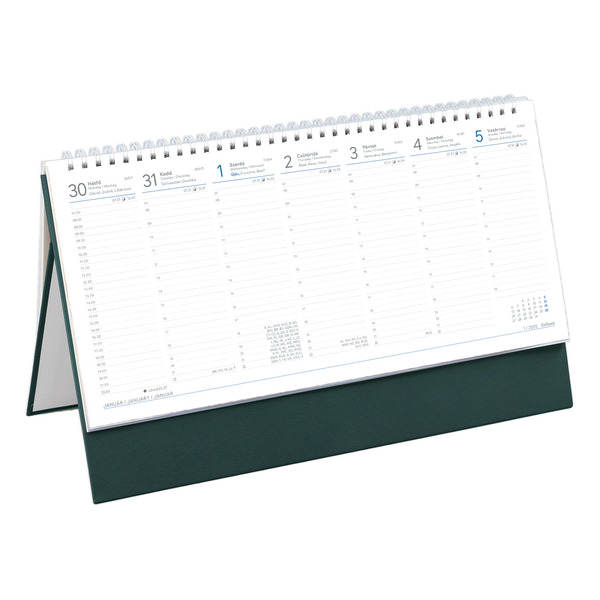Asztali naptár Top Timer T051 fehér tömbös, álló zöld műbőrbevont karton hátlappal, félórás beosztás, 325x155mm 2026.év