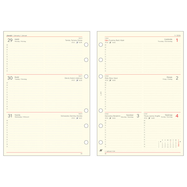 Betétlapcsomag gyűrűs kalendáriumhoz HETI tervező -L311 SATURNUS, 2026.év