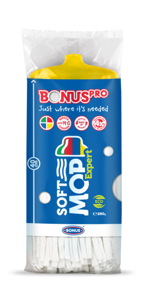 BonusPRO SoftMOP Expert zöld - 250g HoReCa - HACCP. A nagy méretű BONUSPRO SoftMOP Expert kifejezetten ipari felhasználásra lett kitalálva. A BONUSPRO SoftMOP Expert széles felmosófejéhez a hagyományos 11l-es helyett a 18l-es vödröt és csavarókosarat ajánljuk, mert méretéből adódóan ezzel kompatibilis. A nagy hatékonyságú, professzionális felhasználás érdekében csavarjuk ki mopprésben, így az 50% viszkóz és 50% poliészter keverékből készült felmosómop szálai még több vizet képesek felvenni. A termék kettő az egyben menetű fejjel rendelkezik, így szinte minden nyéllel kompatibilis. A profi felhasználók igényeinek megfelelően 250g-os (40cm hosszú) és 300g-os (44cm hosszú) változatban is elérhetők. (ht-202406)