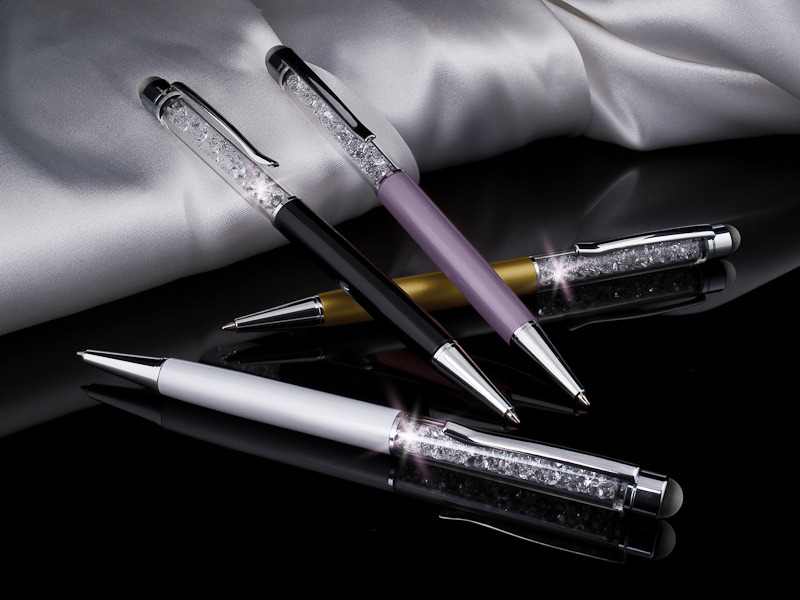 MADE WITH SWAROVSKI ELEMENTS' felül kristályokkal töltött tolltest érintővel. Elegáns dísztokban. A tolltest lézer gravírozható.