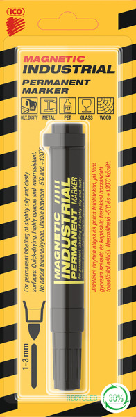 Műanyag, üveg, fém, fa, illetve enyhén olajos és poros felületek feliratozására, jelölésére alkalmas, alkoholbázisú festékkel töltött permanent marker. Gyorsan száradó festék, írásképe törlés- és vízálló. Nem tartalmaz xilolt és toluolt. A marker végén lévő záródugóban elhelyezett mágnes révén, acél felületeken rögzíthető. Használható -5 és 130 C° között. Megnövelt élettartam a nagyobb méretű testnek köszönhetően. Kerekített csúccsal. Vonalvastagság: 1-3 mm.