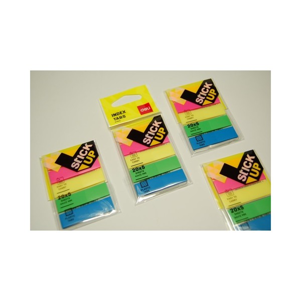 Jelölőcímke, műanyag, 5x20 lap, 44x12 mm, DELI Stick UP, neon színek