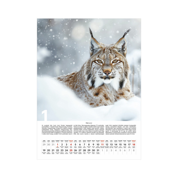 Magyar naptárháló, 14 lapos, 310 × 420 mm-es lapok. Reklámfelület mérete: 310 × 50 mm