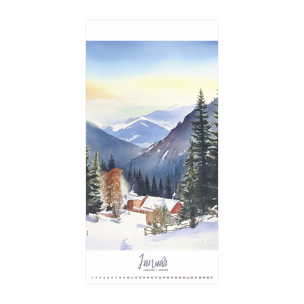 Minden hónapban gyönyörű, akvarell hatású képek teremtenek nyugodt és inspiráló atmoszférát otthonában. Nemzetközi naptárháló. Spirálozott kivitel. Lapméret: 315 × 630 mm. Reklámfelület: 315 × 50 mm