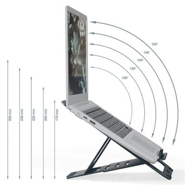 Maximalizáld a kényelmet a munkahelyeden és útközben is az ergonomikus kialakítású Leitz Ergo aluminium állítható magasságú laptop állvánnyal. Válassz az 5 különböző magassági beállítás közül, hogy laptopod képernyőjét ergonomikus és kényelmes látószögbe emeld. Tablethez is alkalmas. A SlimLift Design (SLD) kialakításának és pamut tárolózsebnek köszönhetően ez a laptop tartó állvány könnyen elfér egy táskában, hogy útközben is használhasd, illetve biztonságosan eltárolható akár egy fiókban, ha nincsen használatban. Ez az állítható magasságú notebook állvány erős és tartós alumíniumból készült a stabilitás érdekében. Nyitott kialakítása révén megfelelő légáramot biztosít, így hozzájárul az akkumulátor és a többi alkatrész hűtéséhez. Műanyagmentes csomagolással érkezik, és 100%-ban újrahasznosítható. Ez a modern és minimalista laptopállvány ideális otthon, az irodában vagy útközben a kényelem fokozása és a termelékenység maximalizálása érdekében. Küldetésünk, hogy olyan megoldásokat kínáljunk, amelyek lehetővé teszik az irodai dolgozók számára, hogy a munkahelyükön és azon túl is jól érezzék magukat, elősegítve a pozitív mentális egészséget és a fizikai jóllétet. Más Leitz Ergo termékekkel kombinálva rugalmas és mozgásra ösztönző munkaállomást alakíthatsz ki. Maradj aktív és ÉREZD JÓL magad a Leitz segítségével. (er202412) (C-202505)