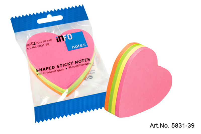 Öntapadó jegyzettömb GLN, szív forma, 200lap, 70x70mm