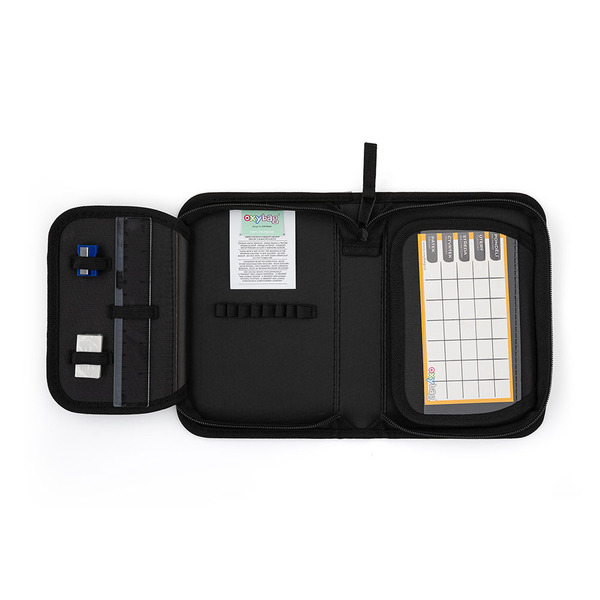 Egyszintes, üres iskolai tolltartó, 2 füllel, UNICOLOR sorozatból, 25 gumigyűrűvel az íróeszközök rögzítéséhez. A belső fülek átlátszó fóliával vannak ellátva az órarend számára.