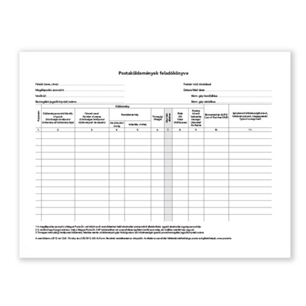 Postaküldemények feladókönyve A/4 fekvő 150 lapos