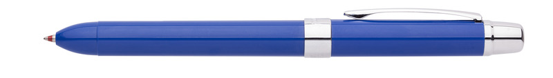 Csavarmechanikával működő, cserélhető betétes multifunkciós irón, 3 funkcióval: golyóstoll kék és piros színben - vonalvastagság: 0,7 mm; mechanikus ceruza - irónbél vastagság: 0,5 mm; beépített radírral. Betét: D1BR6707