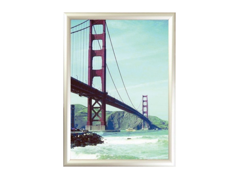 Poszter csere egy mozdulattal. Esztétikus kivitel, a profilok anyaga kiváló minőségű eloxált alumínium, a PVC védőfólia tükröződés gátló.