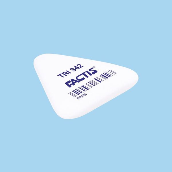 Rugalmas minőségű, hajlékony, szintetikus gumi radír. Háromszög alakú, 7 mm vastag, precíz radírozáshoz, TRI342 modell. 3 féle színben: fehér, rózsaszín és kék. A szin nem választható.