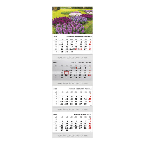 Speditőr naptár Top Timer, Kert fejjel, 4 tömb / 4 hónap, 320x1065mm 2026.év