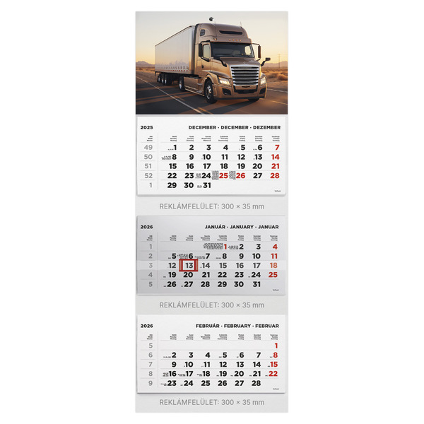 Speditőr naptár Top Timer Kamion, 3 tömb / 3 hónap, 320x852mm, 2026.év