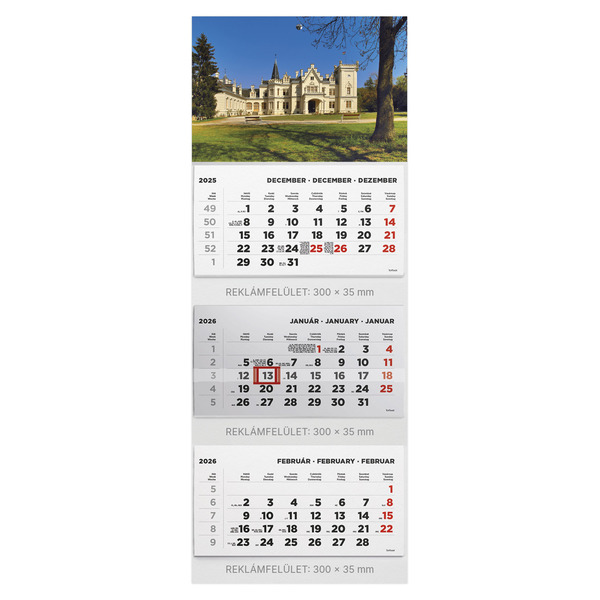 Speditőr naptár Top Timer Kastély, 3 tömb / 3 hónap, 320x852mm, 2026.év