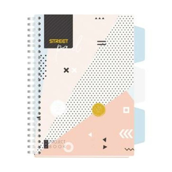 Spirálfüzet regiszteres Projektbook STREET A5 S.PAD COLOR perforált,100lap,duplaspirál kockás