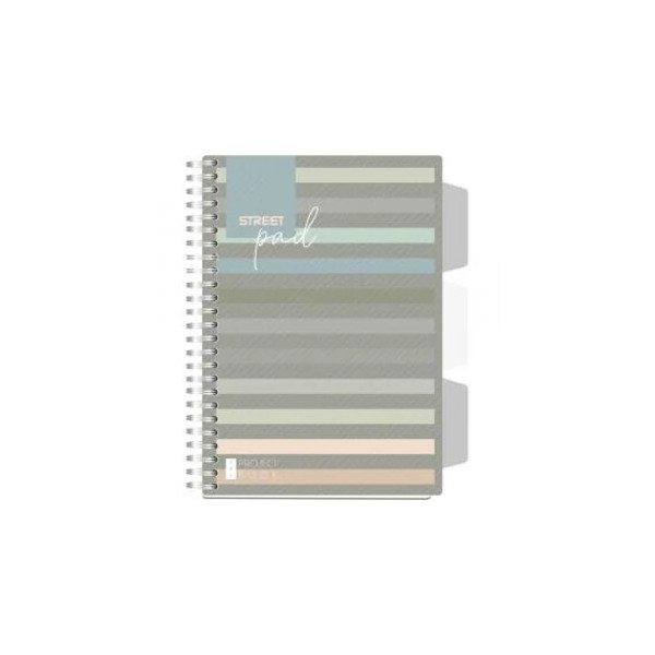 Spirálfüzet regiszteres Projektbook STREET A5 S.PAD LINES perforált,100lap,duplaspirál kockás