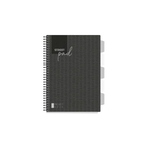 Spirálfüzet regiszteres Projektbook STREET A4 S.PAD BLACK perforált,100lap,duplaspirál kockás