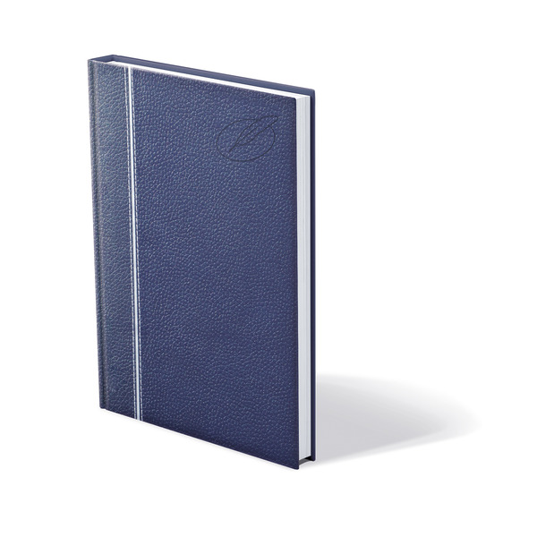 Matt, hőre színeződő műbőr bevonóval, függőleges díszitő csík bevarrásával készült napló. Fehér tömbös, jelzőszalaggal és sarokperforációval