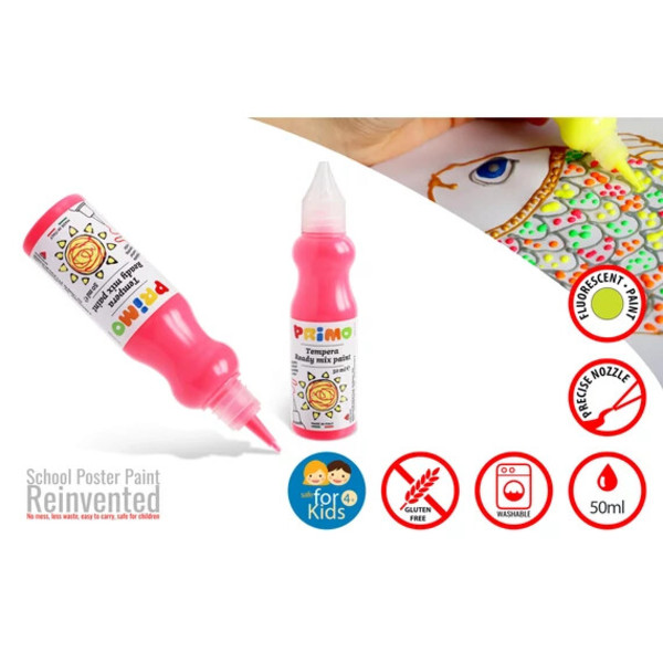 Tempera PRIMO 50ml, finomkihúzóval 2001BRF50370 neon rózsaszín
