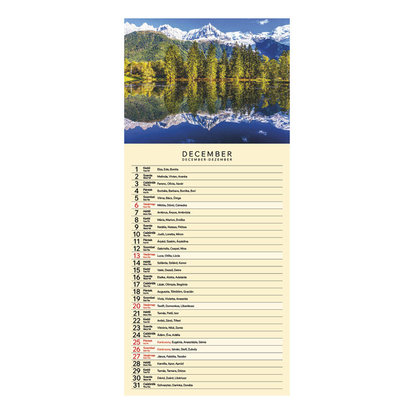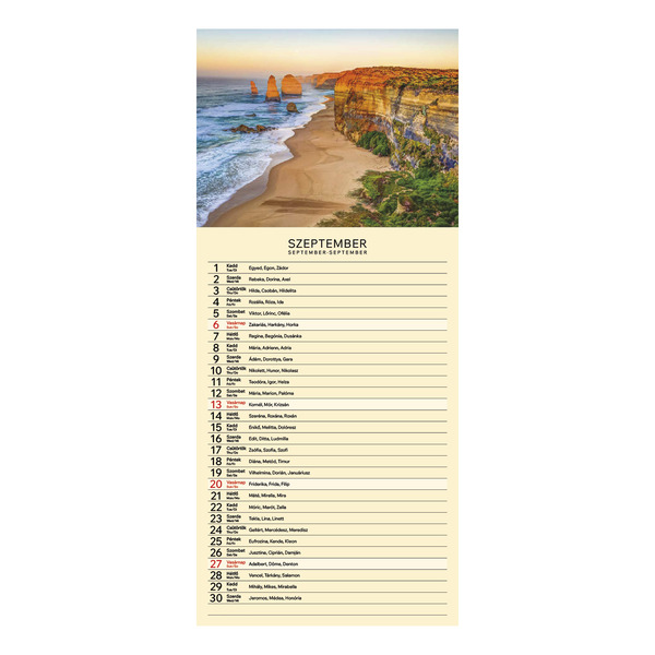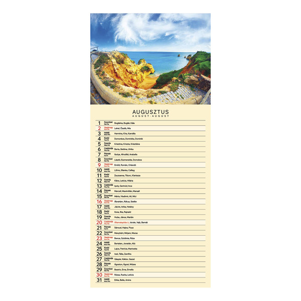 14 lapos, 215x490 mm, magyar naptárhálóval