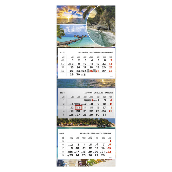 Top Timer Speditőr naptár T080 tűzött, 3 tömb - 3 hónap, 'Beach' fejjel, 2026.év