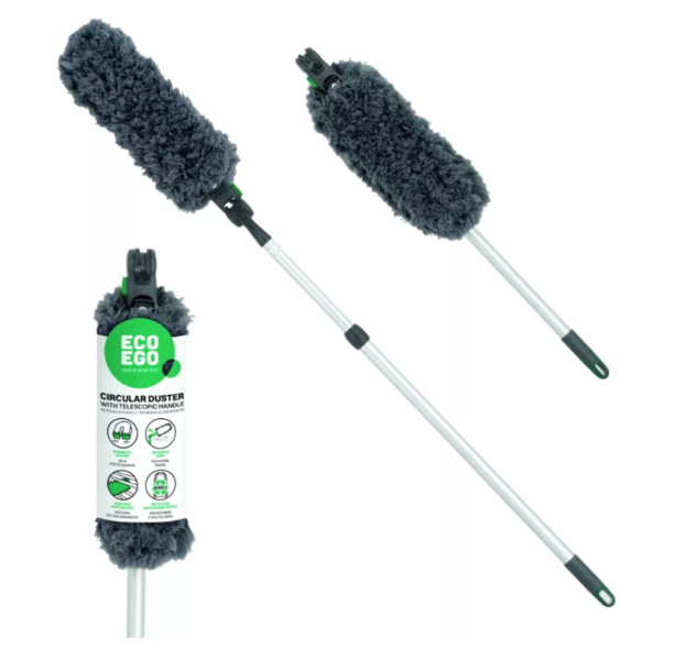 Az EGO ECO Duster könnyű és könnyen kezelhető. Minimális helyet foglal, így könnyen tárolható. A mikroszálas kendő kényelmesen mosógépben mosható (a javaslatoknak megfelelően), ami meghosszabbítja élettartamát és visszaadja frissességét. A por eltávolítása még soha nem volt ilyen egyszerű! A Duster ECO EGO poroló puha mikroszálas fejjel rendelkezik – egy páratlan anyaggal. Mi teszi egyedivé a mikroszálat? Ez az innovatív anyag, amely ultravékony (jelentősen vékonyabb, mint az emberi hajszál!) poliészter és poliamid szálakból áll, kivételesen puha és nedvszívó szerkezettel rendelkezik. A szintetikus szálak sűrű hálózata mágnesként vonzza a szennyeződéseket, és magába zárja azokat, csökkentve az allergének levegőbe jutását. A mikroszálat hosszú élettartam jellemzi. A gyakori használat és a rendszeres mosás nem befolyásolja a tulajdonságait. Ez az utántöltő szárazon és nedvesen is hatékony. Használhatod bármilyen felület hatékony letörlésére, a bútoroktól, falakon és padlókon át a levelekig, virágokig és üvegárukig. Állítható nyél a nagyobb pontosság és kényelem érdekében. A mikroszálas kefefej teleszkópos nyélre van szerelve, amely 62 és 103 cm között állítható. Ráadásul egyetlen mozdulattal meghajlítható, így növelve a poroló hatótávolságát és a tisztítás pontosságát. Kifinomult kialakításának köszönhetően gyorsan az igényeidhez igazíthatod az eszközt, és elérheted a nehezen elérhető sarkokat, például a függönyrudakat, mennyezeti lámpákat, a könyvek mögötti részt a polcon, a bútorok mögötti repedéseket, a radiátor lamelláit és a szegélyléceket. Fel fogod fedezni, hogy otthonod rendben tartása soha nem volt még ilyen egyszerű!