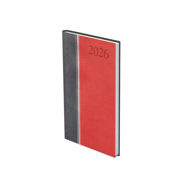Matt, bőrhatású, hőre színeződő műbőr bevonóval, függőleges díszítő csík bevarrásával készült naptár. Fehér tömbös zsebnaptár, jelzőszalaggal és sarokperforációval. Vaknyomással és lézergravírozással emblémázható