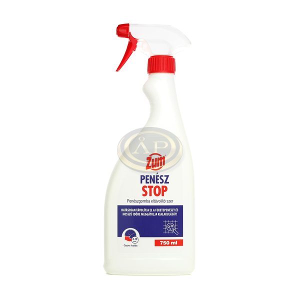 A ZUM penész STOP a felületeken megbúvó penészgomba eltávolításához. ZUM penész STOP 750 ml A ZUM penész STOP egy hatékony penészgátló tisztítószer, amely elpusztítja a penészgombákat, valamint más baktériumokkal és gombákkal is kíméletlenül elbánik. A tisztítószer használható: penészgombás felületek megtisztítására, csempék, burkolóanyagok penészmentesítésére, gombafertőzéses fugatömítésektisztítására, valamint fehér falfelületek és sarkok gombátlanítására. Figyelem! Színtelenítő hatása van, emiatt nem ajánlott nyomott, színes anyagokat, illetve mintás falfelületeket kezelni vele. Használat előtt érdemes kipróbálni egy kevésbé látható helyen.
